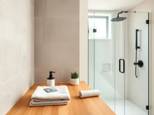 Drewno lub materiały drewnopodobne dodają wnętrzu przytulności. Stosuje się tu najczęściej egzotyki, takie jak teak czy merbau, lub dobrze zabezpieczony buk. Bezpieczniejszą alternatywą są wodoodporne panele meblowe i płytki drewnopodobne, które wyglądają jak deska, ale znoszą wilgoć znacznie lepiej.